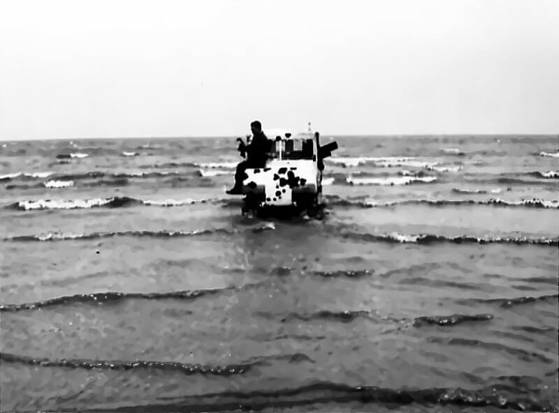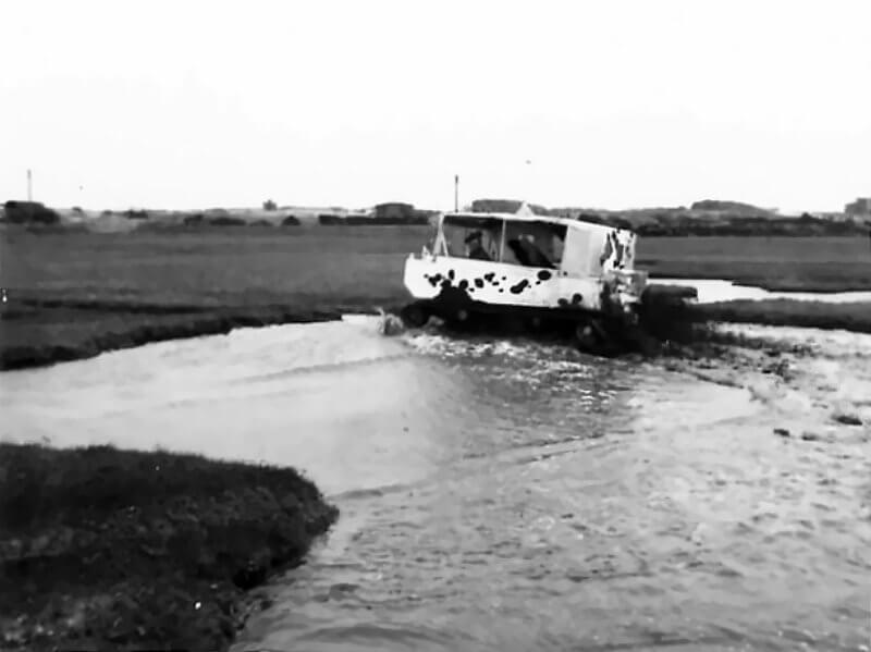 In Northwest Europe, Weasels take part in the Normandy landings on June 6th, 1944. They operate among the amphibious vehicle groups during the early assault phase. During the breakout from Normandy they haul ammunition to frontline infantry. They carry prisoners to the rear. After vehicle serial number 4104 they receive a stretcher kit. This allows evacuation of wounded from terrain inaccessible to jeeps. Engineers employ them to lay telephone cables using deck-mounted reel systems. Signal units use them as mobile radio platforms. The British 79th Armoured Division and Canadian formations make heavy use of Water Weasels in the flooded ground of the Scheldt Estuary in late 1944. In this campaign they operate alongside Alligators, DUKW’s, Buffaloes, and other amphibious vehicles. In deep mud and shallow water the Weasel remains one of the few reliable transport platforms.